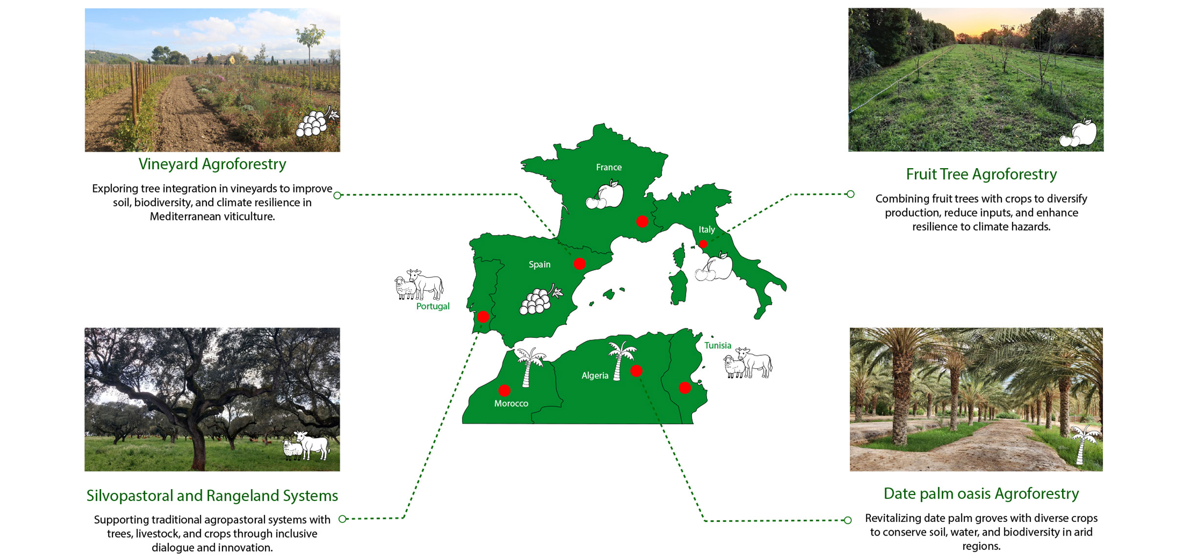 Within AGROFORESTEAM, seven MAPs will be strengthened or newly created across Mediterranean regions. These platforms will co-design agroforestry systems adapted to local contexts, including silvopastoral, silvoarable, and oasis-based systems, and are intended to endure beyond the project’s lifetime as drivers of long-term sustainability.